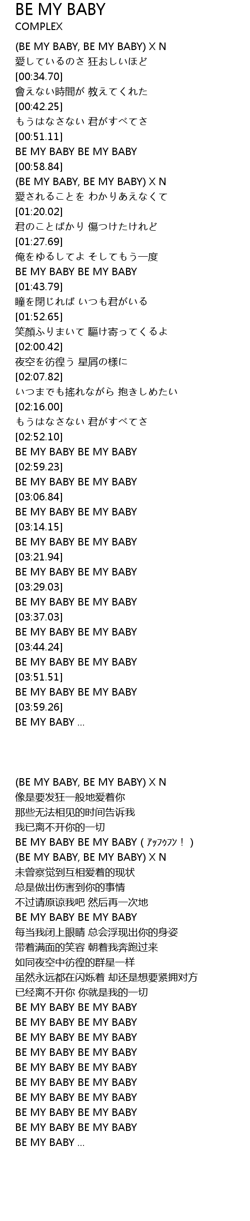 | [03:30.48] | BE MY BABY BE MY BABY |