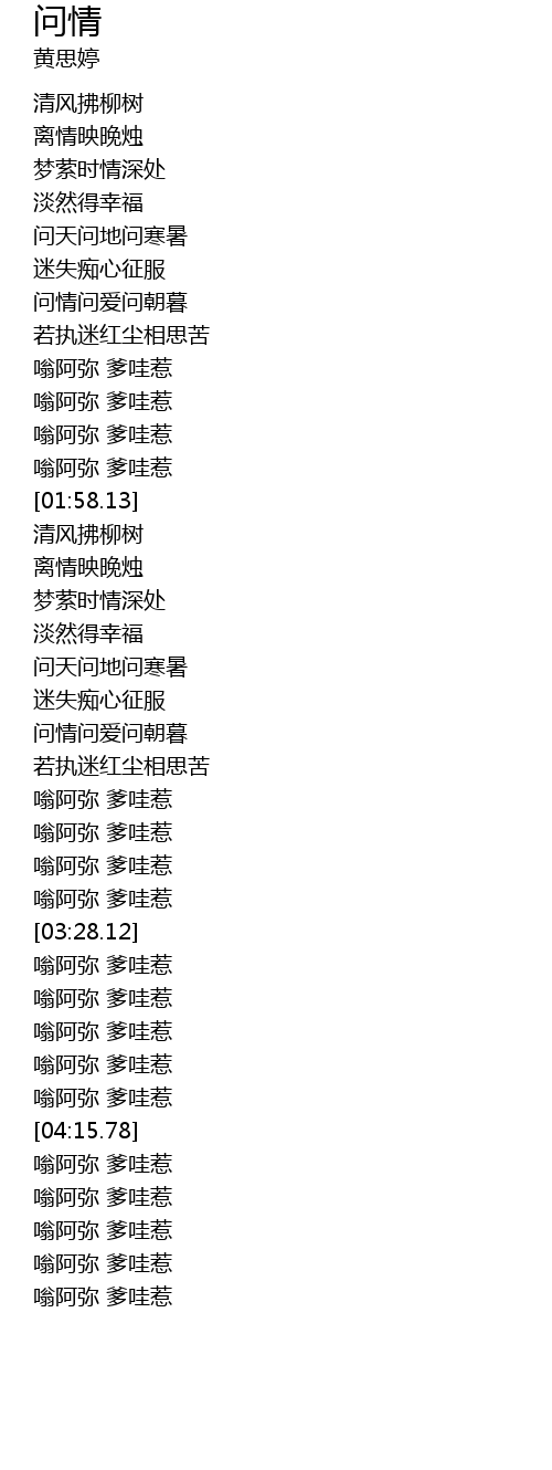 | [01:22.07] | wèn qíng wèn ài wèn zhāo mù |