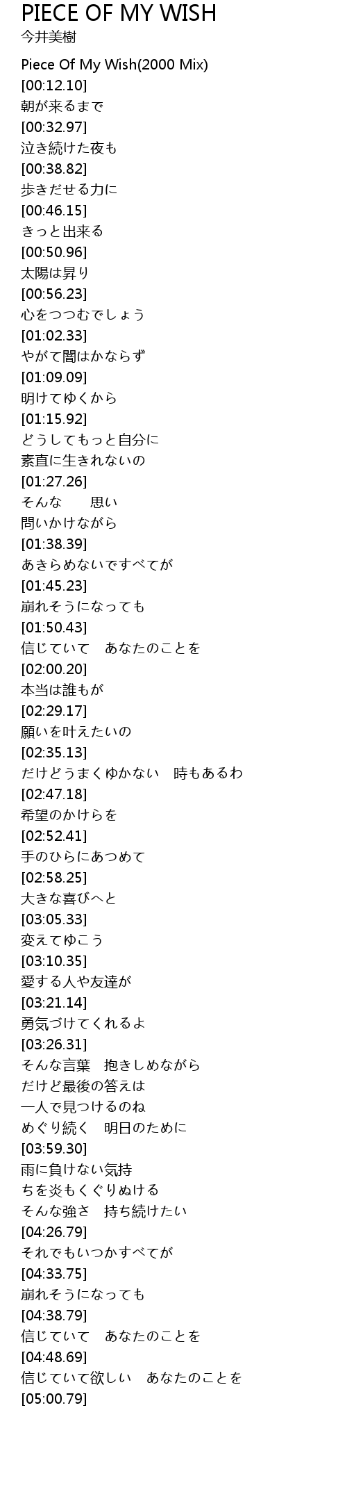 | [00:02.82] | Piece Of My Wish 2000 Mix |