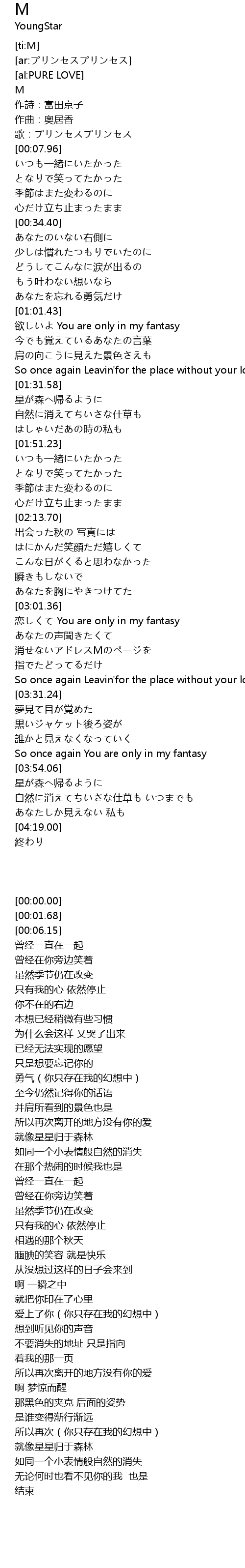 | [01:03.06] | yu You are only in my fantasy |