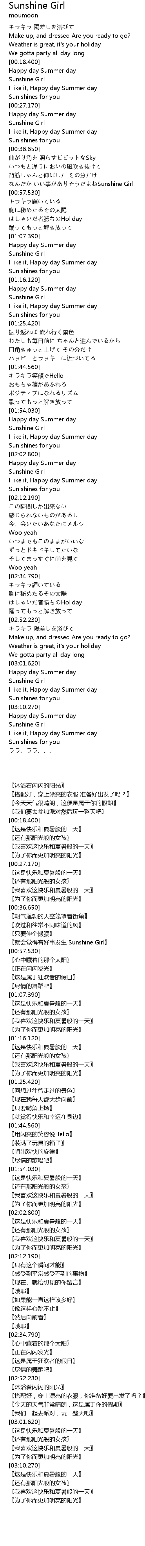 | [00:51.610] | なんだか いい事がありそうだよねSunshine Girl |