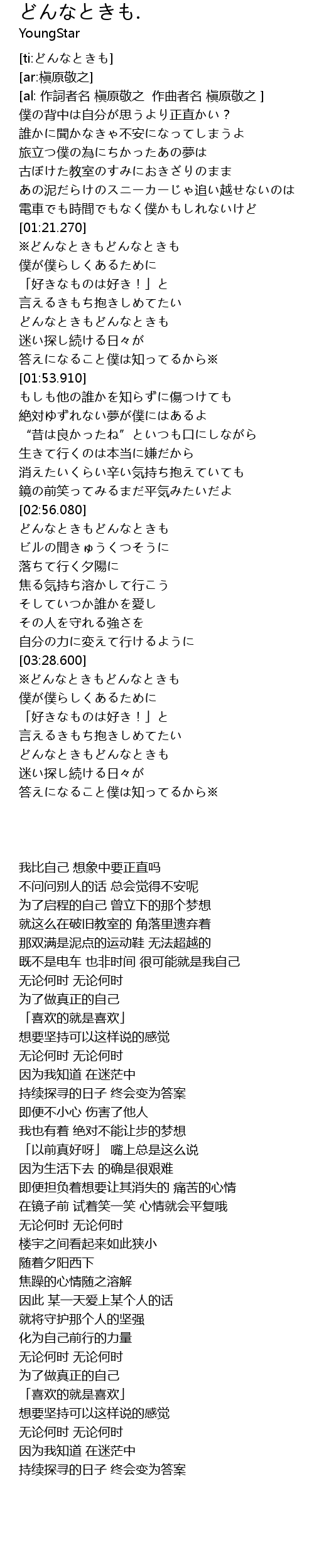 | [01:13.580] | 電車でも時間でもなく僕かもしれないけど |