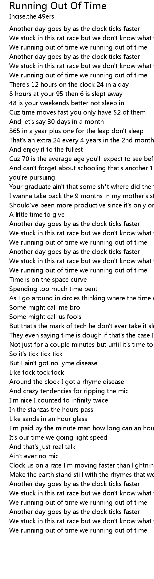| [01:34.23] | They even saying time is dough if that's the case I'd rhyme to flow |