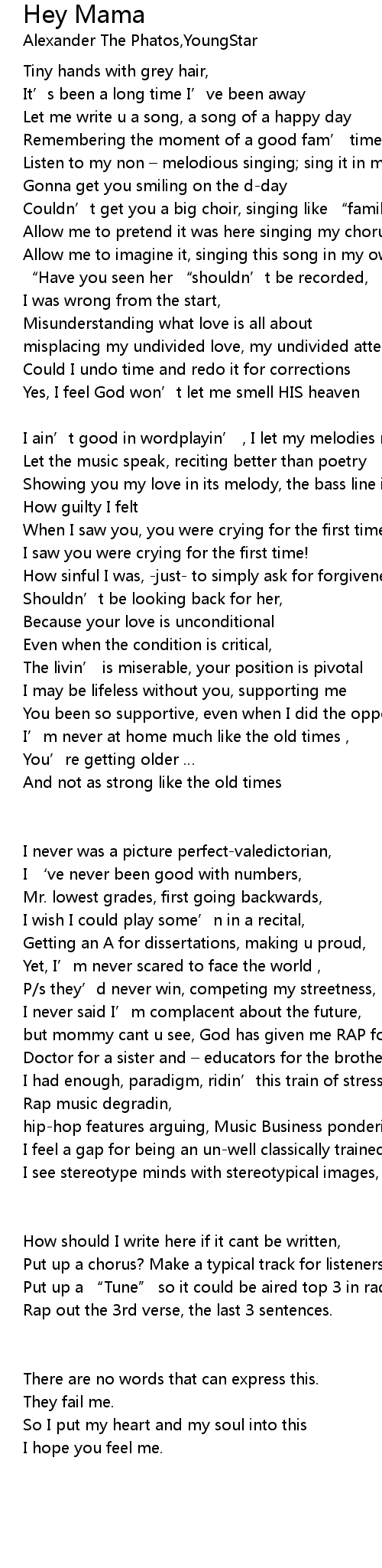 | but mommy cant u see, God has given me RAP for a career, | |
