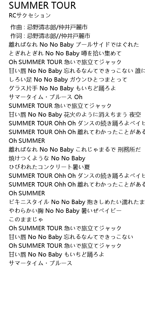 | [02:24.14] | SUMMER TOUR Ohh Oh ダンスの続き踊ろよベイビー |