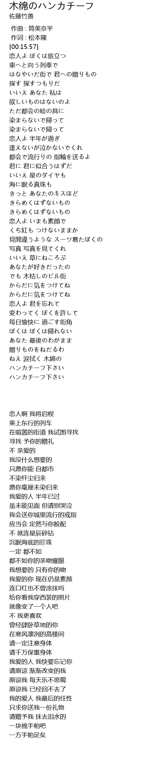 | [03:40.33] | ねえ 涙拭く 木綿の |
