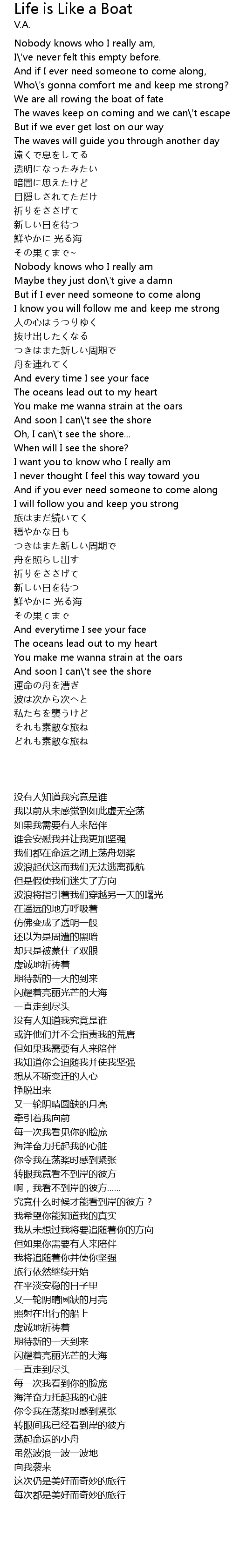 | [00:20.180] | We are all rowing the boat of fate |