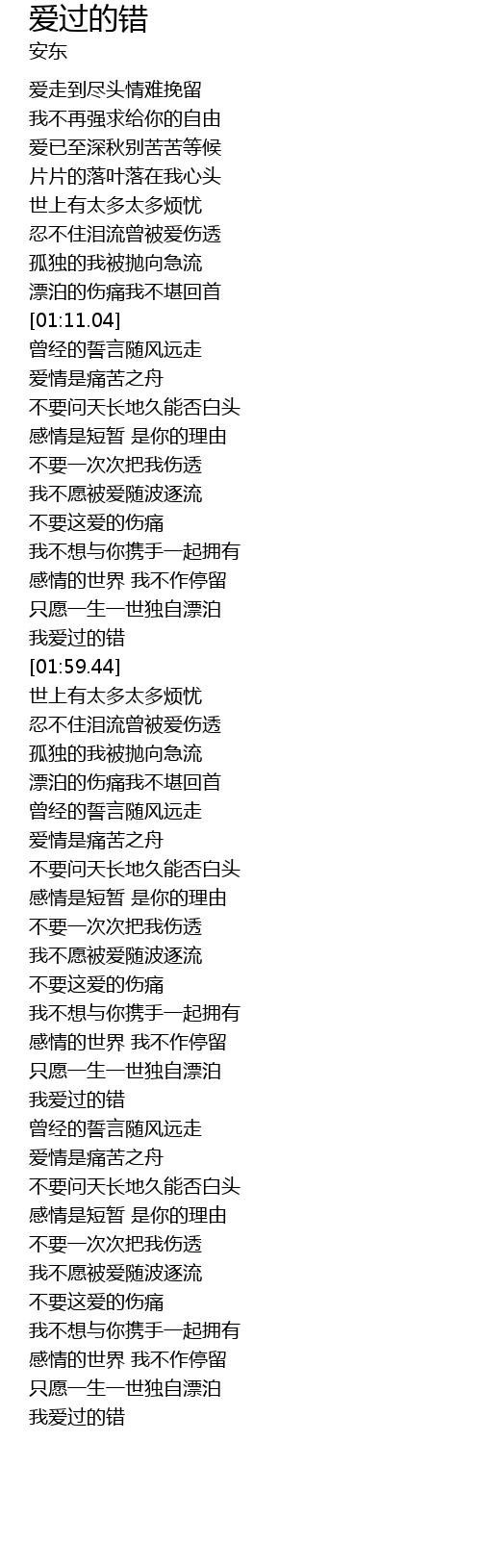 | [01:54.38] | wǒ ài guò de cuò |