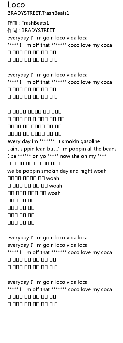 | everyday I' m goin loco vida loca | |