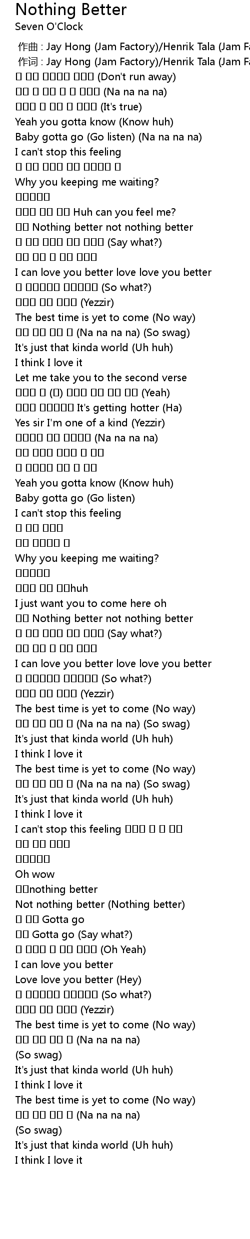 | [00:43.60] | 이젠 Nothing better not nothing better |