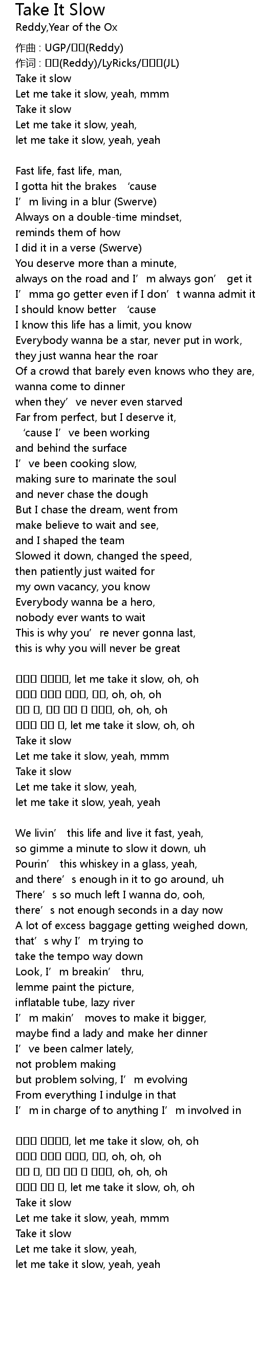| 천천히 가도 돼, let me take it slow, oh, oh | |