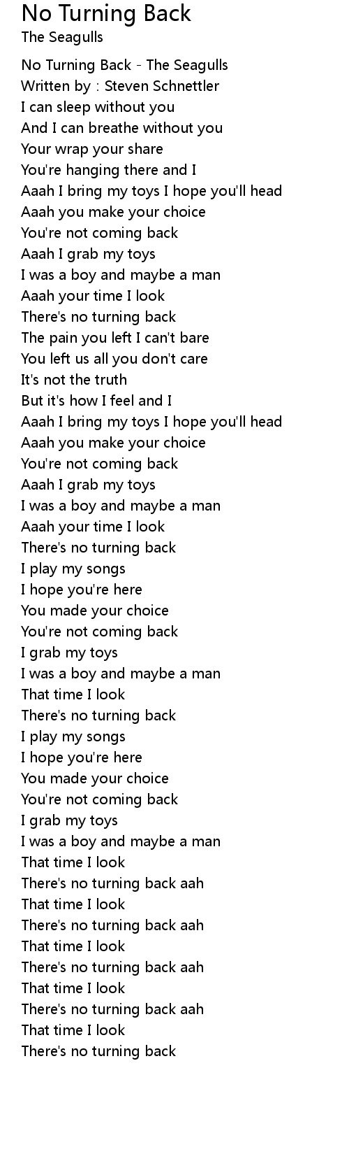 | No Turning Back The Seagulls | |