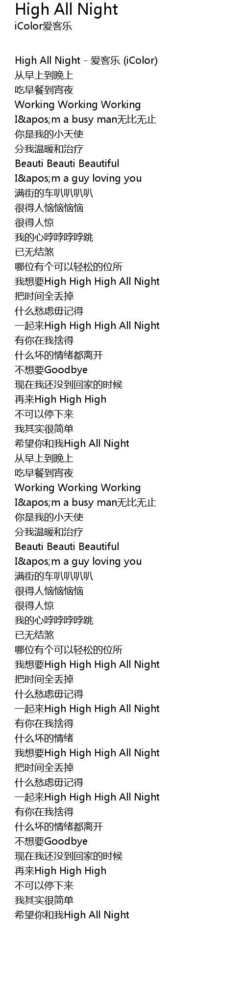 | High All Night - 爱客乐 (iColor) | |
