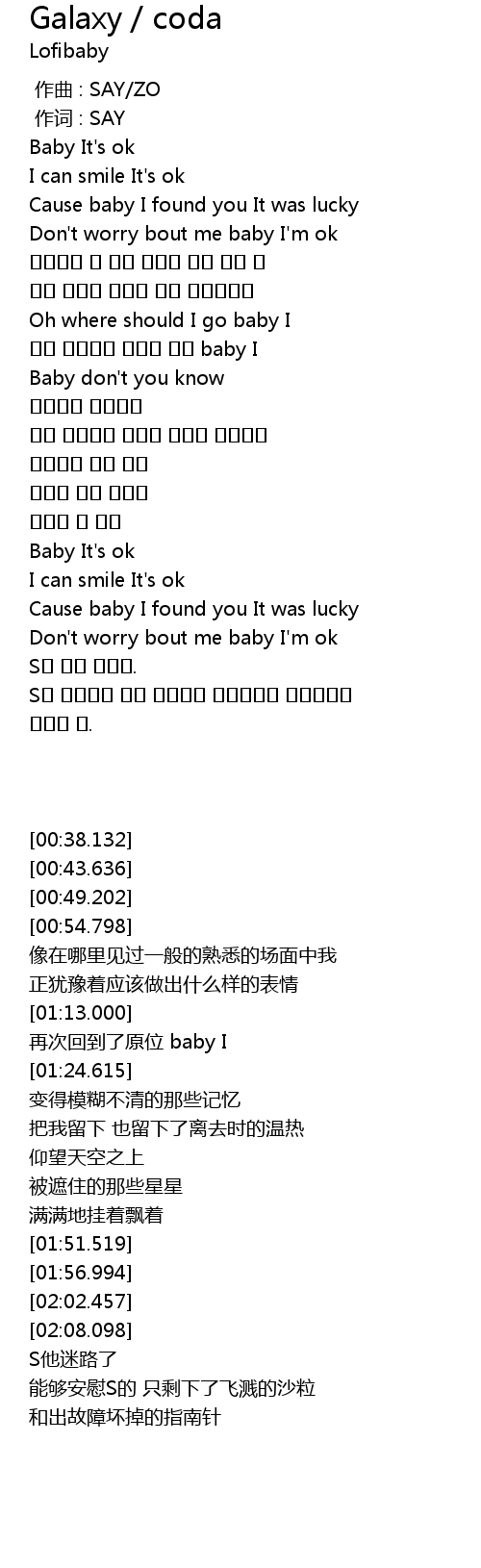 | [00:38.132] | Baby It's ok |