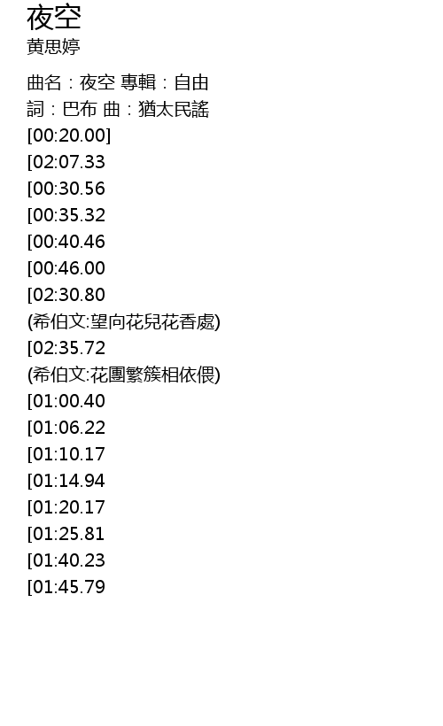 | [00:10.00] | 曲名:夜空 專輯:自由 |