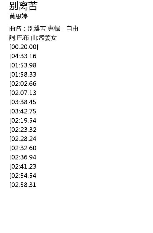 | [00:10.00] | 曲名:別離苦 專輯:自由 |