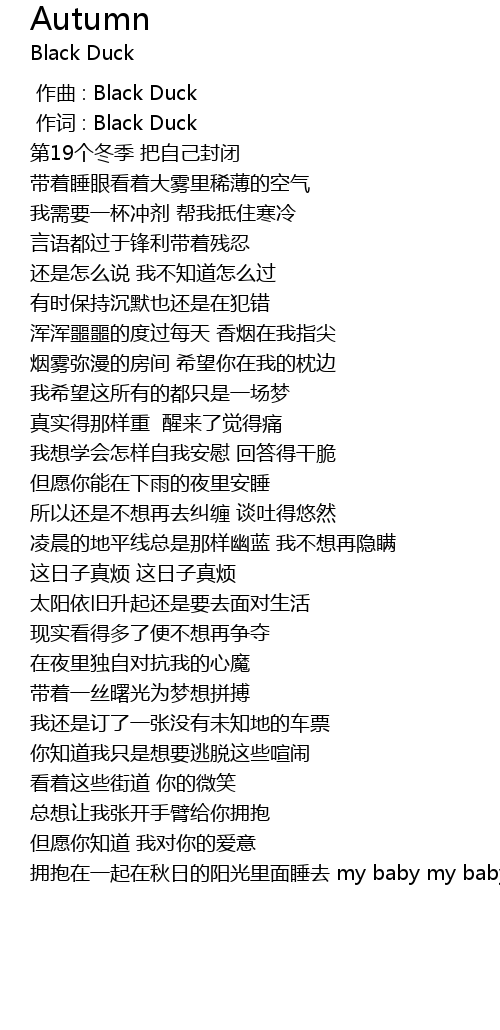 | [00:01.000] | 作词 : Black Duck |