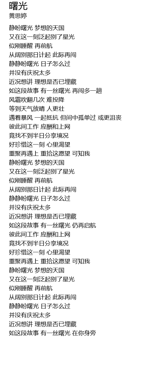 | [03:17.50] | 静静盼曙光 日子怎么过 |