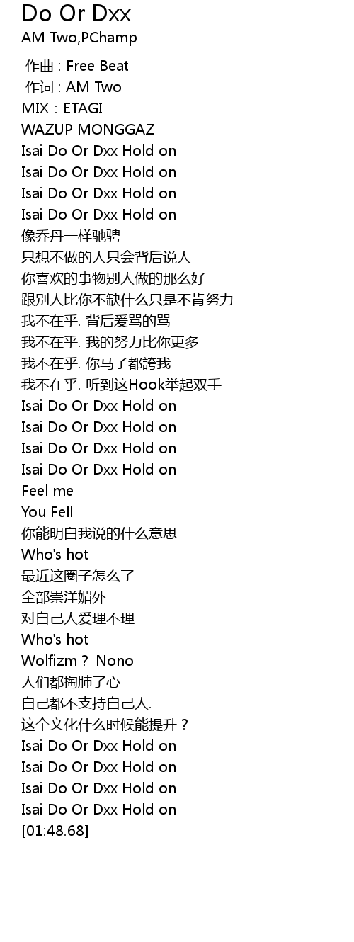 | [01:44.76] | Isai Do Or Dxx Hold on |