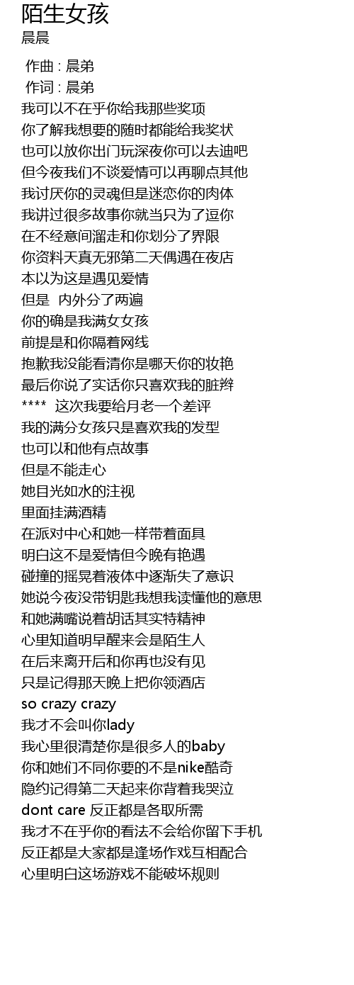 | [00:01.000] | 作词 : 晨弟 |