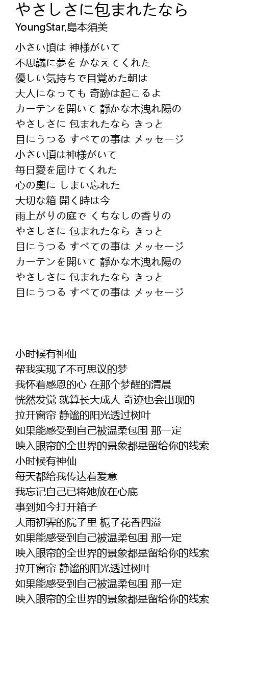 やさしさに 包まれたなら きっと |