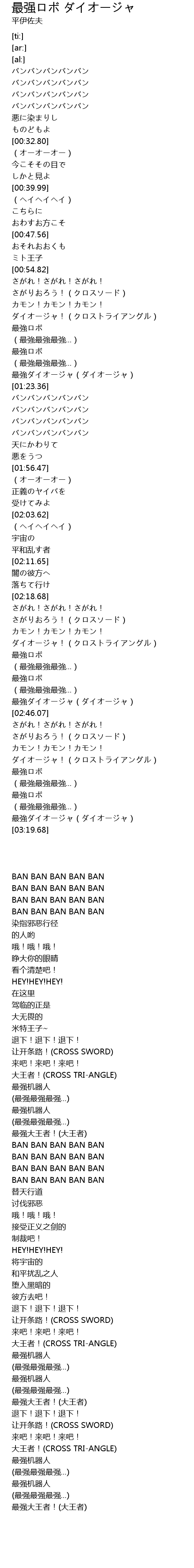 | [03:08.27] | 最強ダイオージャ(ダイオージャ) |