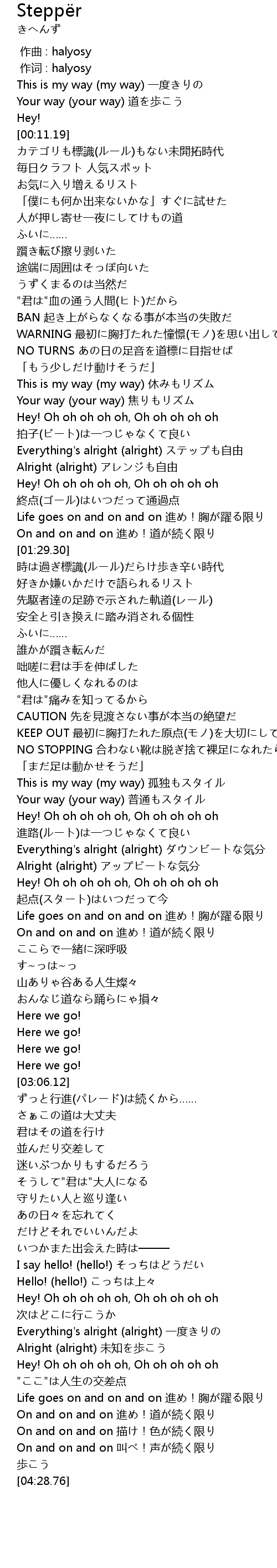 | [02:39.43] | Life goes on and on and on 進め!胸が躍る限り |