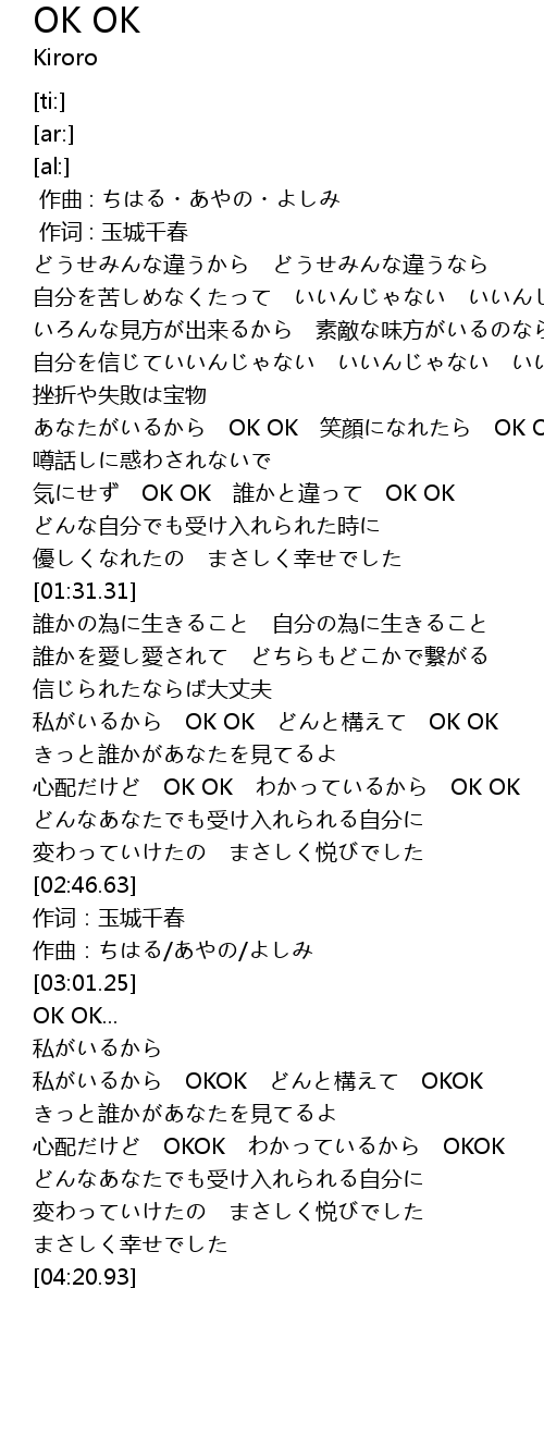 | [02:23.45] | 心配だけど OK OK わかっているから OK OK |