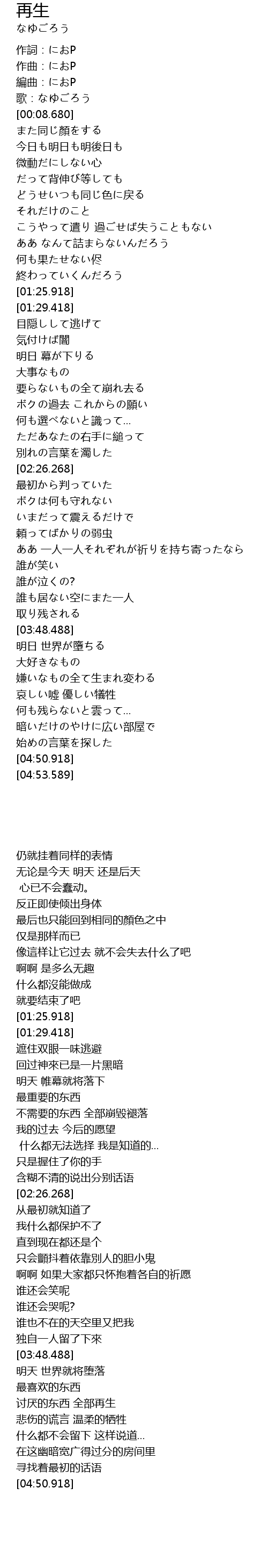 | [04:15.867] | 嫌いなもの全て生まれ変わる |