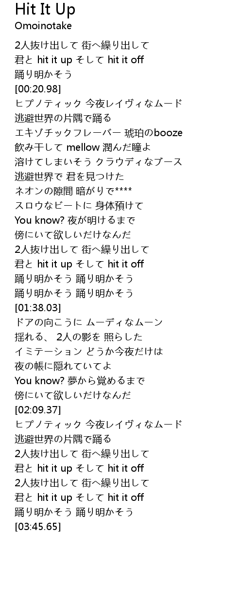 | [03:24.76] | 君と hit it up そして hit it off |