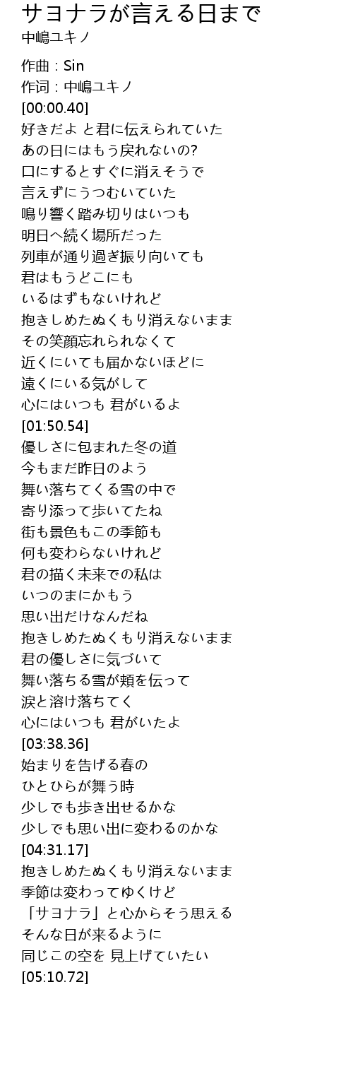 | [04:46.55] | 「サヨナラ」と心からそう思える |