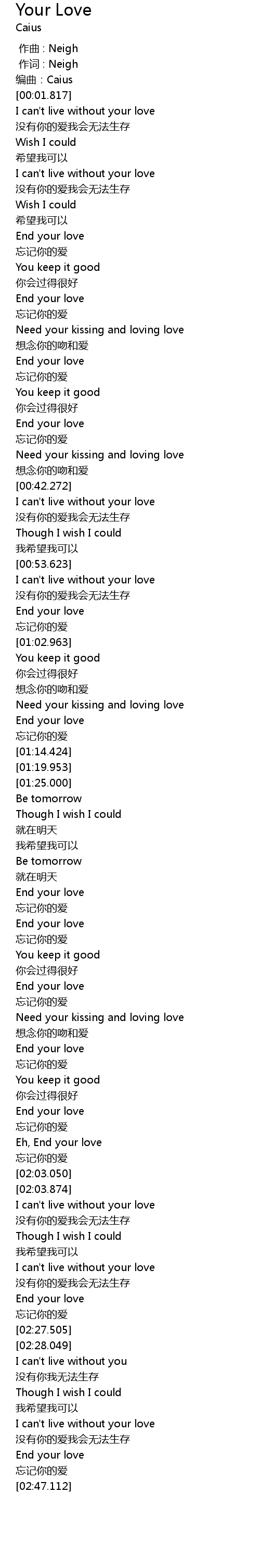 | [02:43.970] | 没有你的爱我会无法生存 |