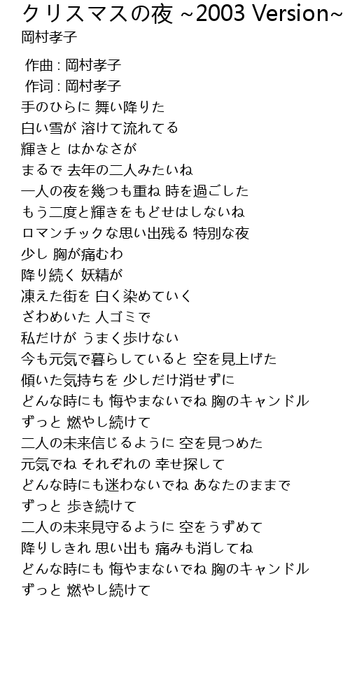 | [04:12.30] | どんな時にも 悔やまないでね 胸のキャンドル |