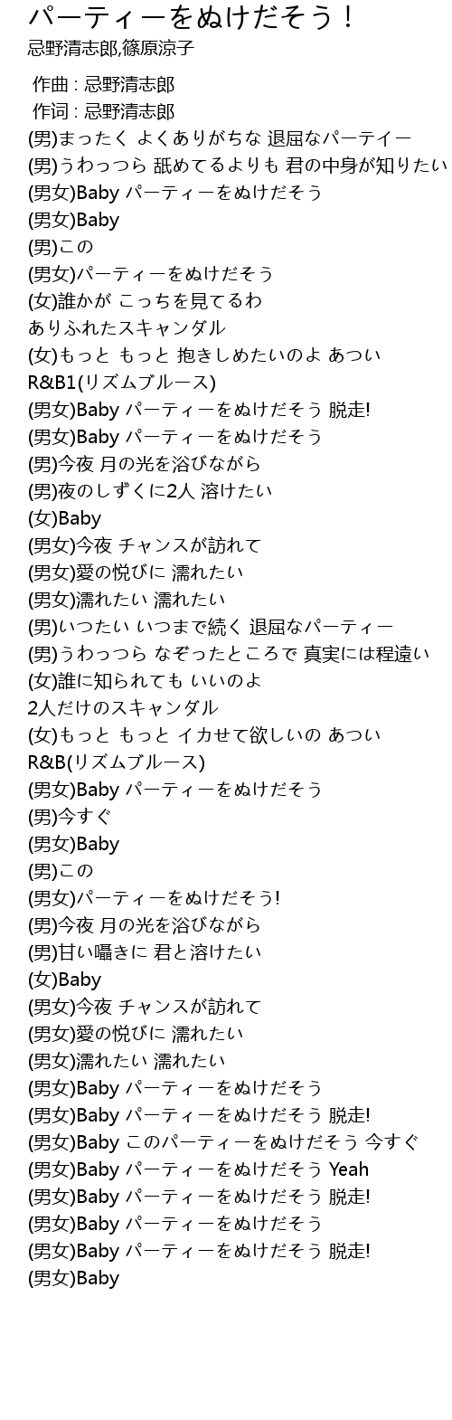 | [03:58.12] | (男女)Baby パーティーをぬけだそう |