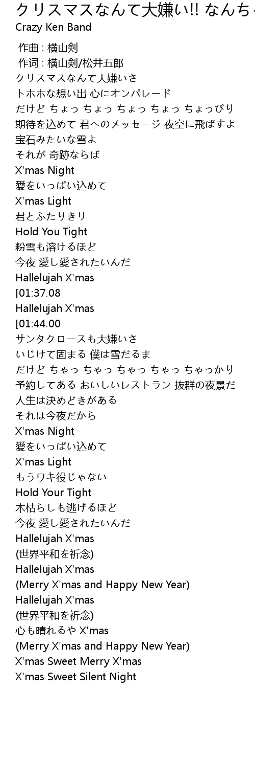 | [01:57.88][01:44.00] | (Merry X'mas and Happy New Year) |