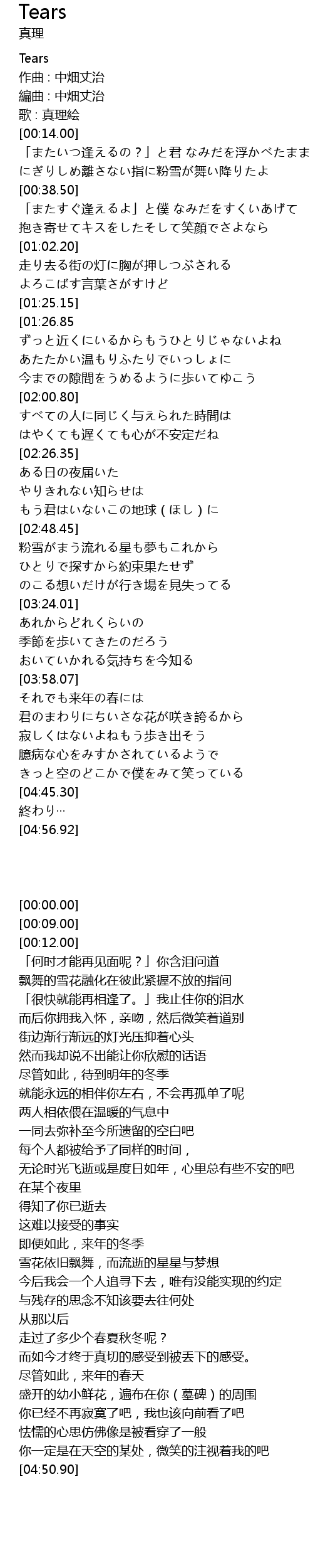 | [00:39.50] | 「またすぐ逢えるよ」と僕 なみだをすくいあげて |