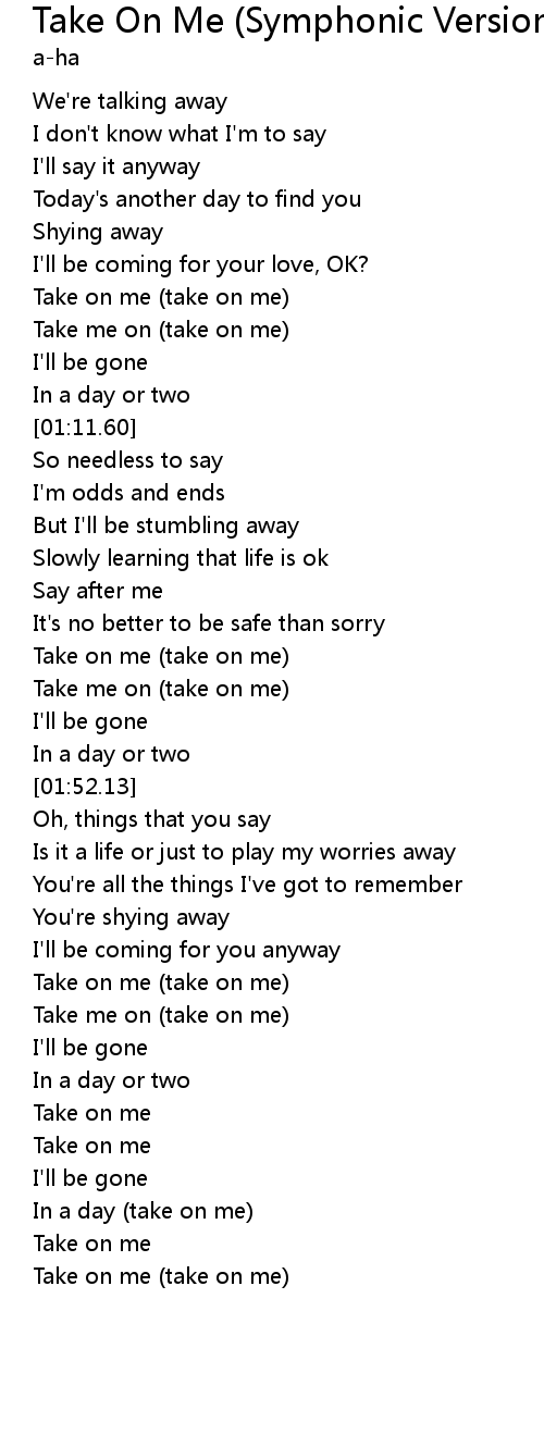 Take me on (take on me) |