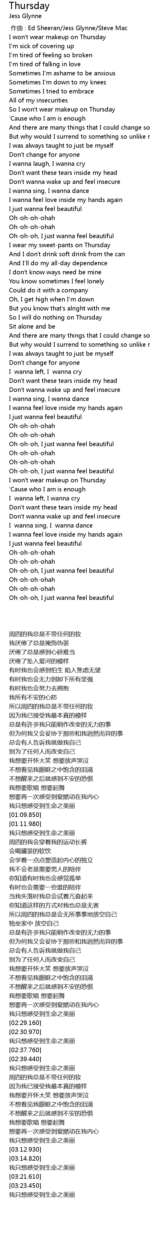 | [02:46.710] | I won' t wear makeup on Thursday |