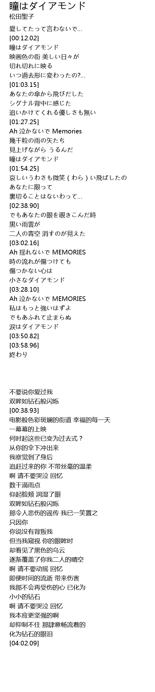 | [01:50.05] | 瞳はダイアモンド |