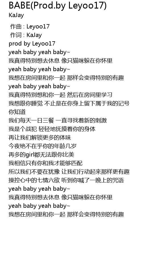 | [00:30.759] | yeah baby yeah baby |