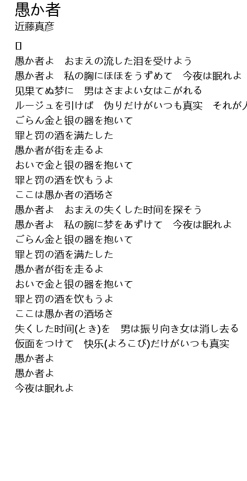 | 愚か者よ 私の胸にほほをうずめて 今夜は眠れよ | |