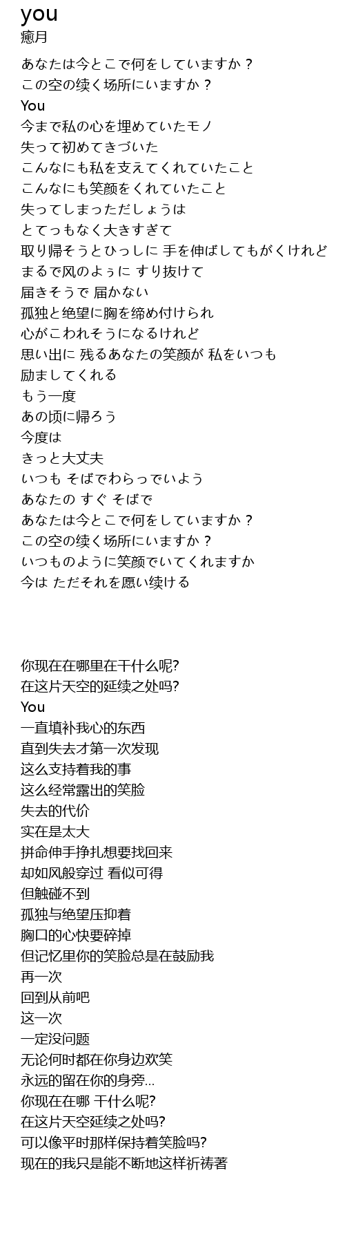 | [00:08.870] | この空の续く场所にいますか? |