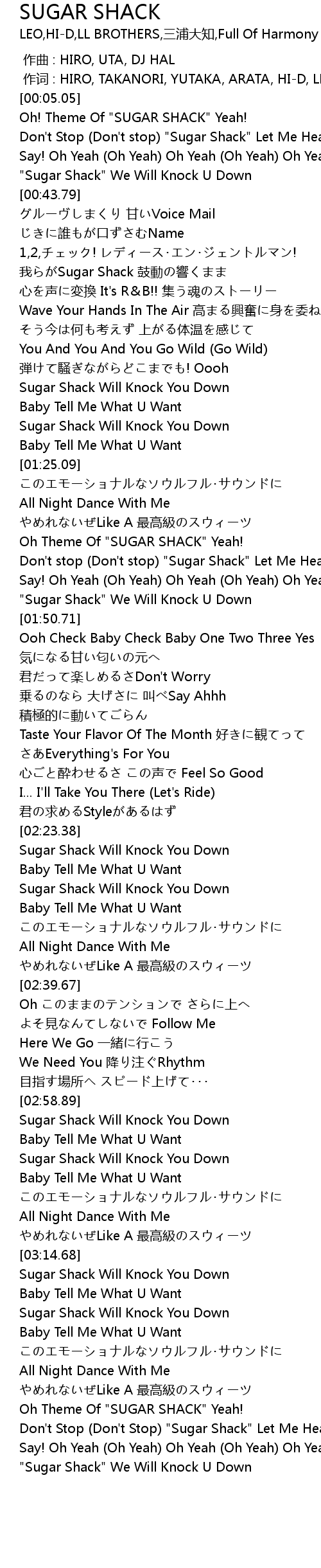 | [03:31.65] | Oh Theme Of "SUGAR SHACK" Yeah! |