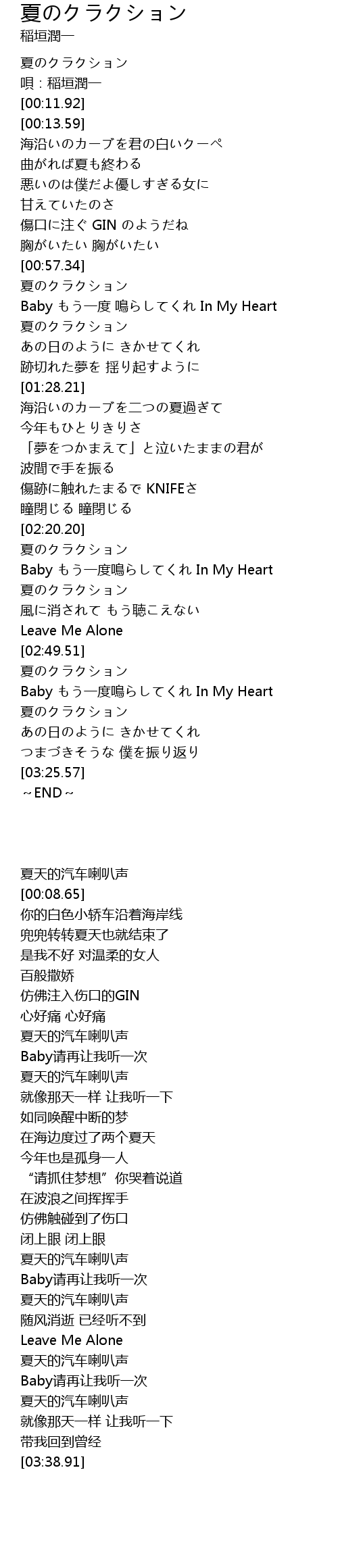 | [01:39.39] | 海沿いのカーブを二つの夏過ぎて |