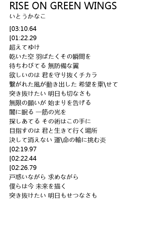 | [03:21.09][02:19.97] | shāng GREEN WINGS |