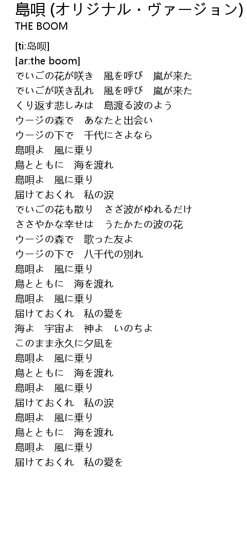 | [01:06.54] | くり返す悲しみは 島渡る波のよう |