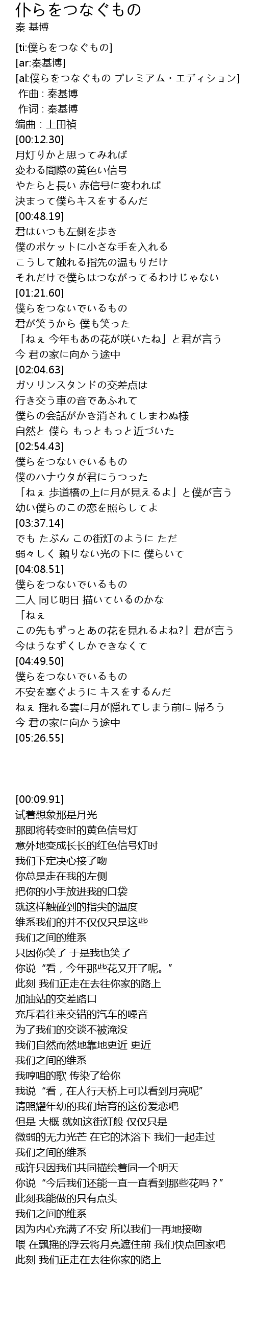 | [01:13.38] | それだけで僕らはつながってるわけじゃない |