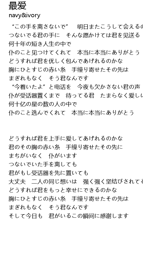 | 大丈夫 二人の同じ想いは 强く强く坚结びされてるから | |