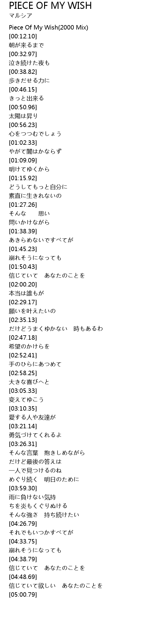 | [00:02.82] | Piece Of My Wish(2000 Mix) |