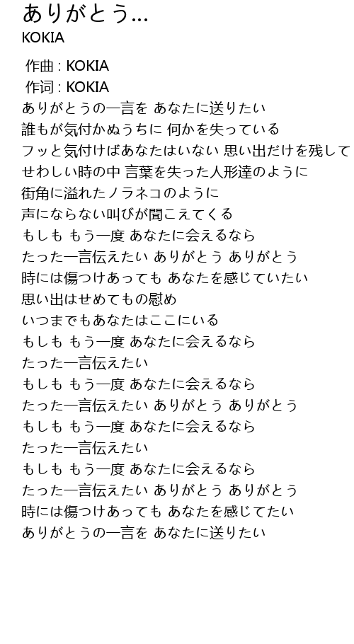 | [04:51.76] | ありがとうの一言を あなたに送りたい |
